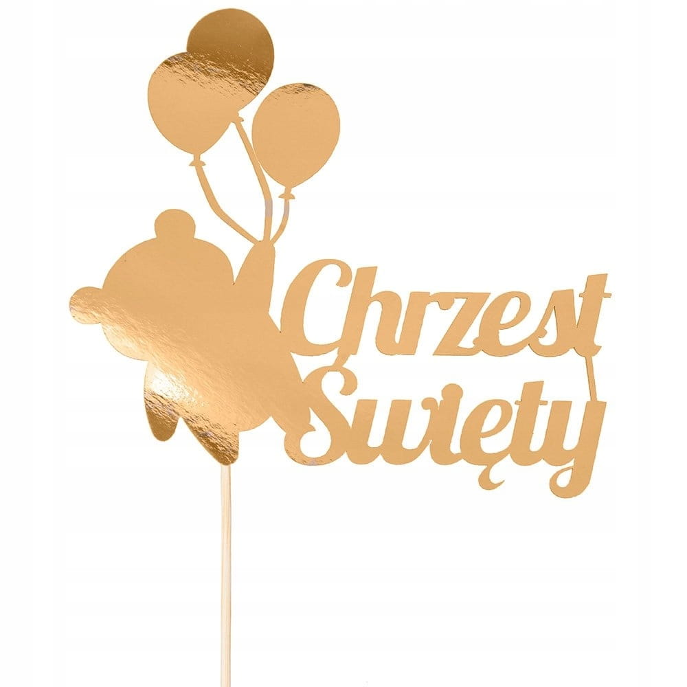 Topper złoty piker Chrzest Święty Miś Balony 30 cm
