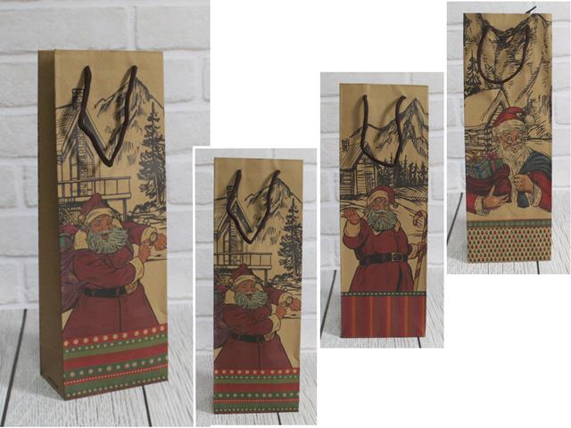 Torebka prezentowa świąteczna z MIKOŁAJEM eko na butelkę, 36 x 12 x 8 cm, 1 szt.