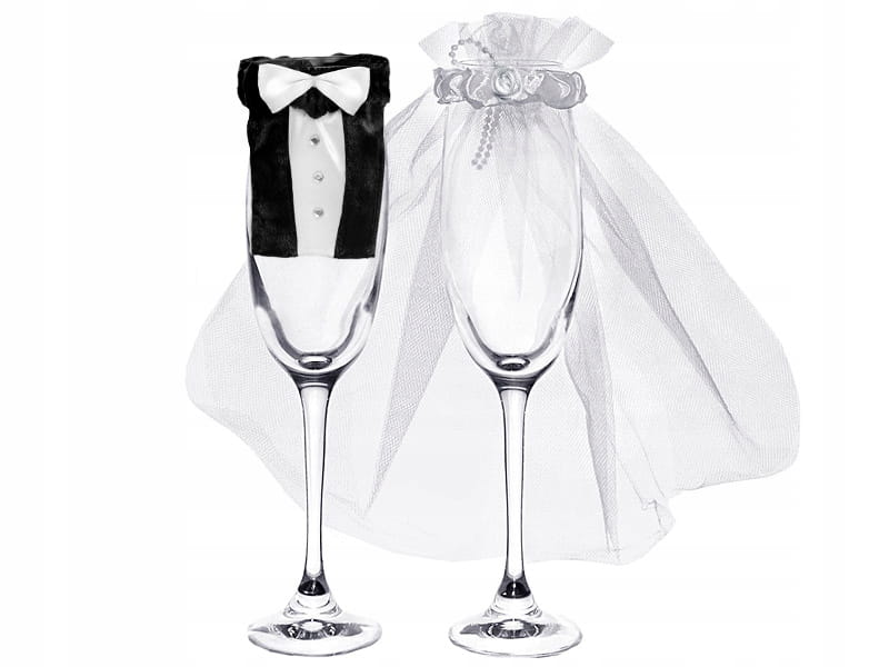 Ubranka na kieliszki frak kamizelka welon zestaw