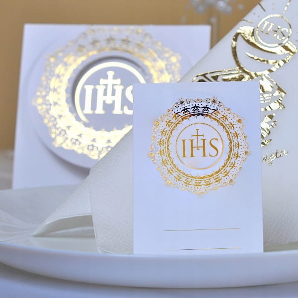 Wizytownik ornament I Komunia Święta IHS