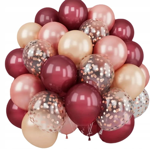 Zestaw Balonów Dekoracyjnych - Bordowy, Różowo złoty, brzoskwinia i Złoty z Konfetti