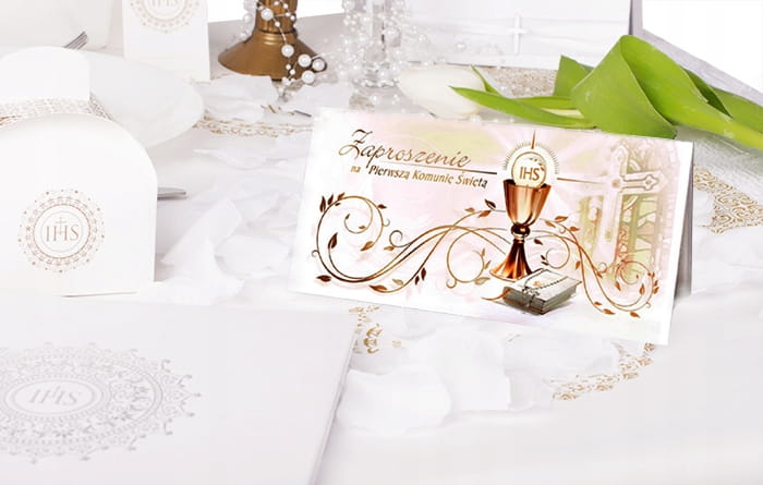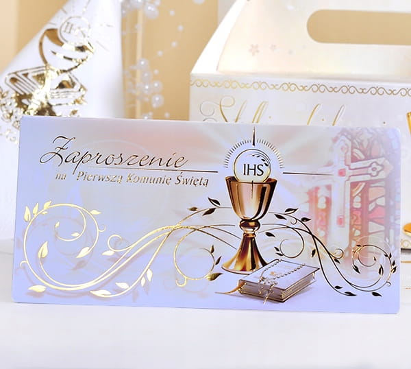 Zaproszenia na komunię komunijne kremowe z kopertą