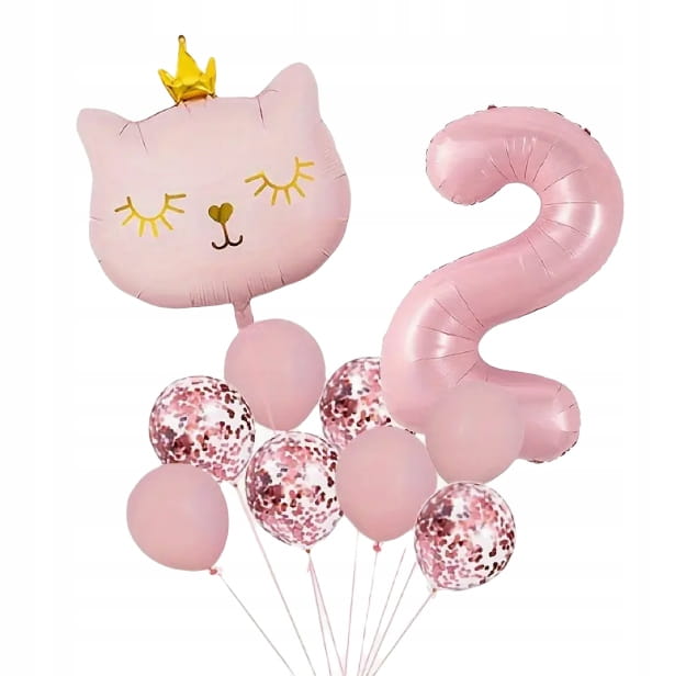 Zestaw Balonów - Różowy Kot z Koroną i Cyfra 2