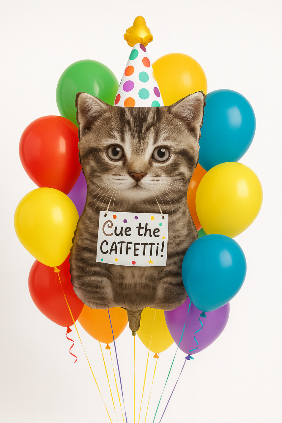 - 1 × balon foliowy Kotek — ok. 36 × 69 cm (zawór samozamykający)