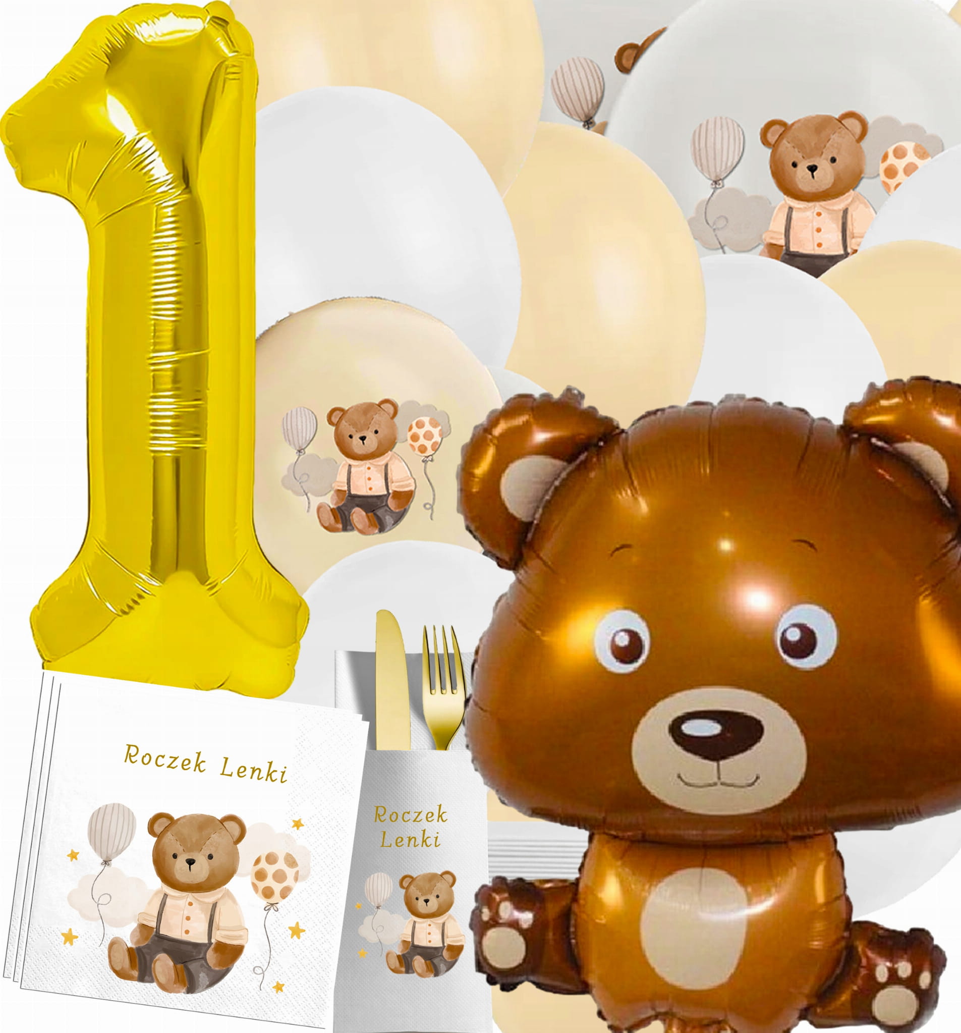 Zestaw Balony SERWETKI kieszonki z Imieniem cyfra 1