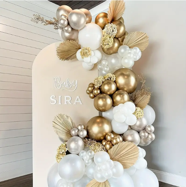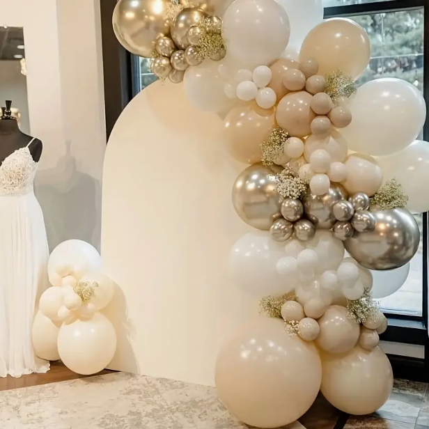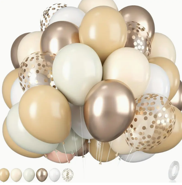 Dodaj elegancji i klasy swojemu ślubowi lub innym uroczystym okazjom dzięki naszemu zestawowi beżowych balonów z konfetti. Ten zestaw balonów jest idealny na wesela, jubileusze i inne wyjątkowe chwile, tworząc niezapomnianą dekorację.