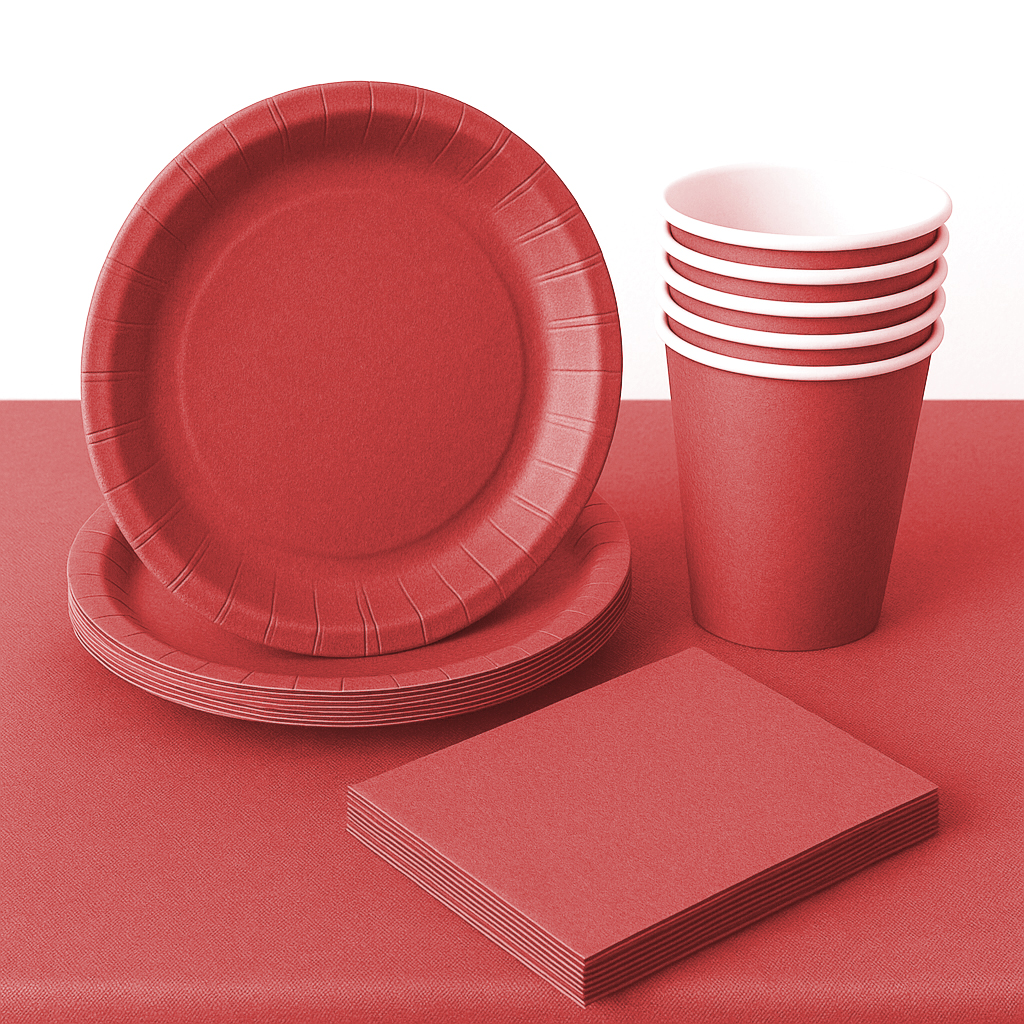 Elegancka, głęboka czerwień wprowadzi szyk na każdym przyjęciu! Ten kompletny zestaw to szybki i wygodny sposób na udekorowanie stołu w spójnej kolorystyce – idealny na urodziny, imprezy firmowe, wieczory tematyczne czy przyjęcia w domu i ogrodzie.