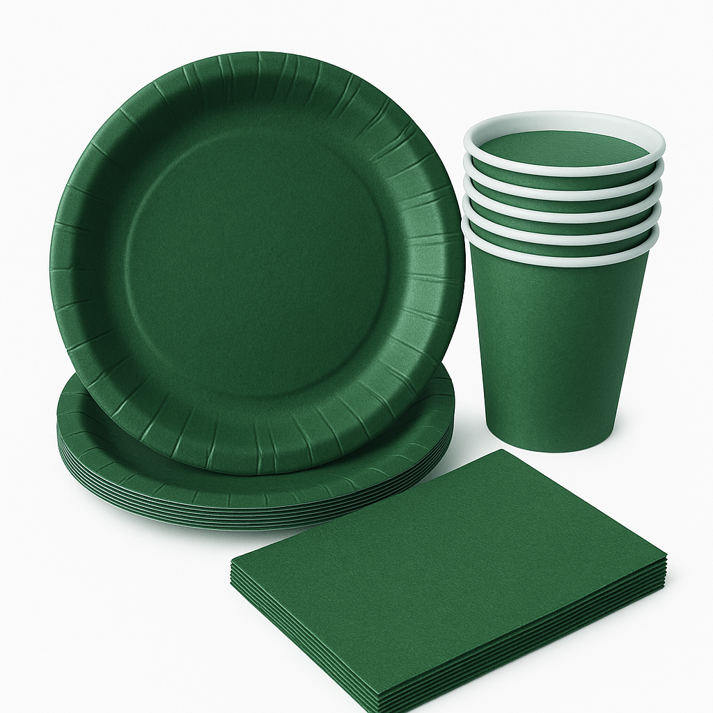 Zestaw Imprezowy – Ciemnozielony (Serwetki 20 szt., Kubki 6 szt., Talerzyki 6 szt.)