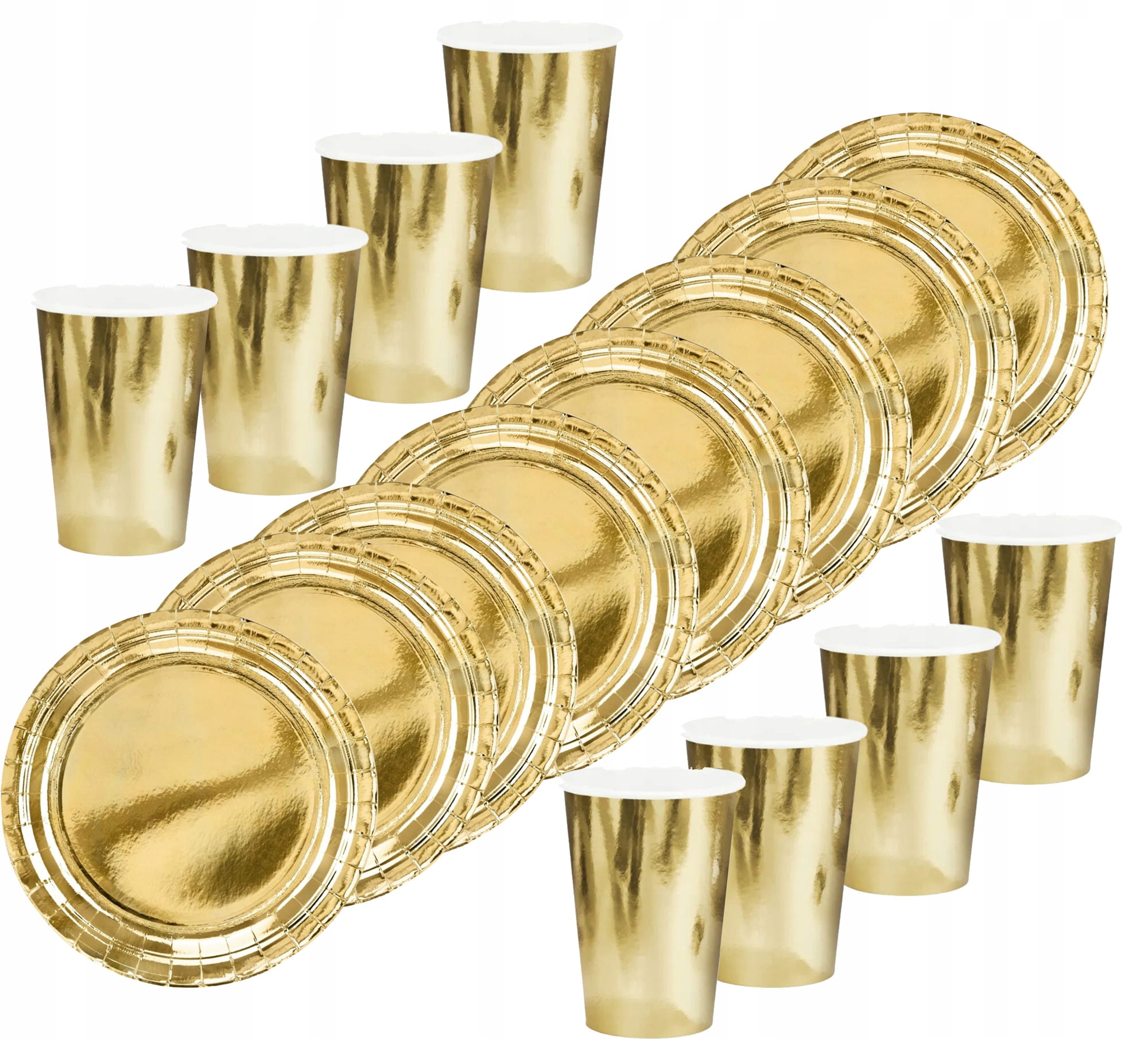 Zestaw Papierowe talerzyki i kubeczki ZŁOTE 16 sztuk