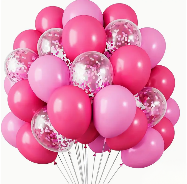 Zestaw balonów w odcieniach różu, idealny na każdą uroczystość. Dodaj blasku swojej dekoracji dzięki balonom z konfetti!