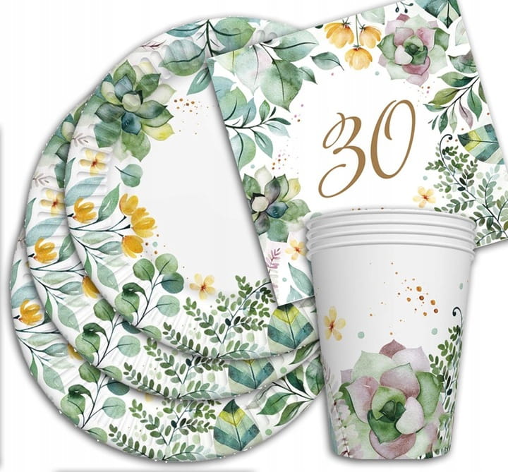 Zestaw Talerze kubeczki serwetki 30 Urodziny Rocznica