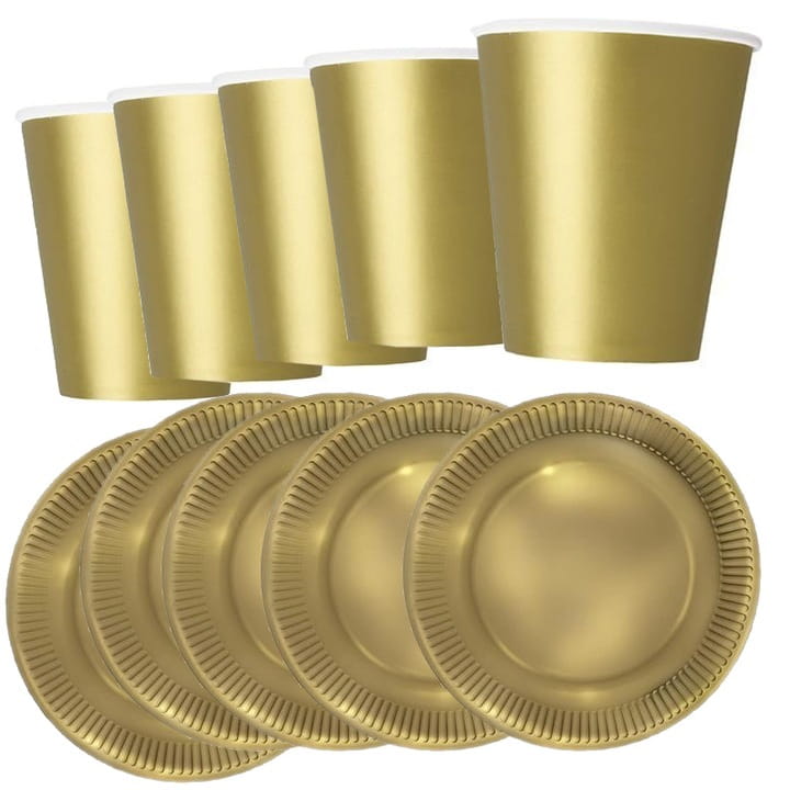 Zestaw Urodzinowy złoty Kubeczki Talerzyki 16szt