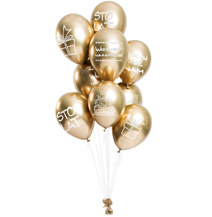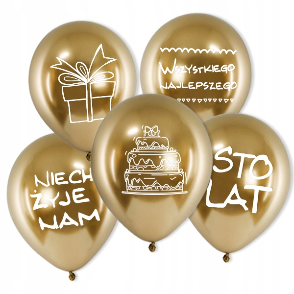 - 5 × balon złoty chromowany z nadrukiem urodzinowym