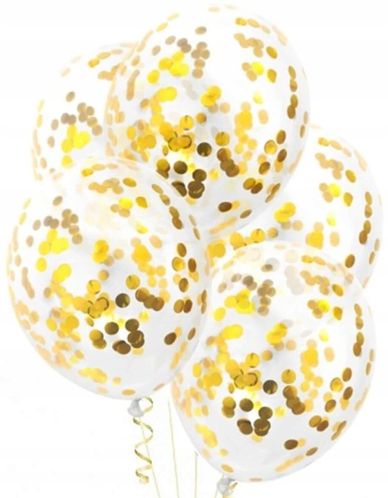 - 5 × balon transparentny z konfetti złotym