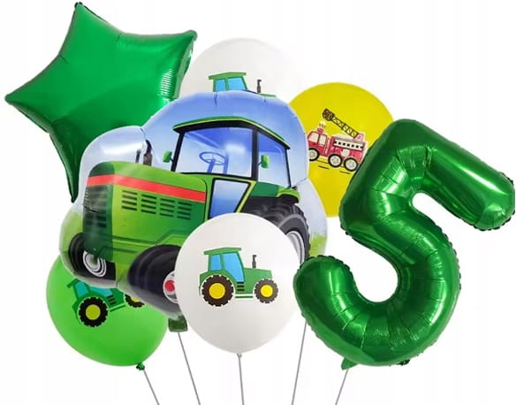 Zestaw balonów na 5 Urodziny cyfra Pięć Traktor Straż Rolnik Farma