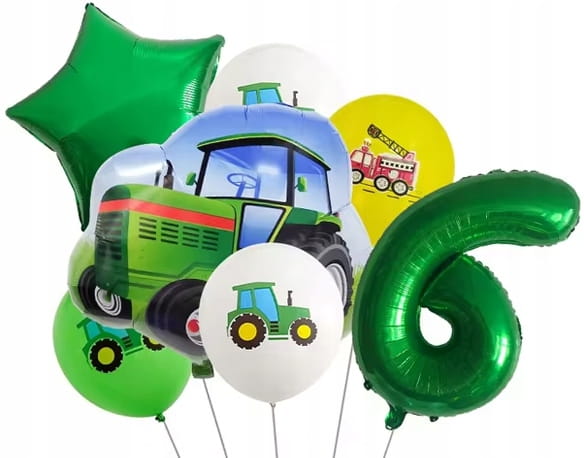 Zestaw balonów na 6 Urodziny cyfra sześć Traktor Straż Rolnik Farma