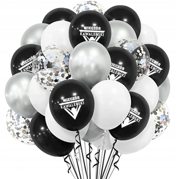 - Wzór: Nadruk "Wieczór Kawalerski" na czarnych balonach