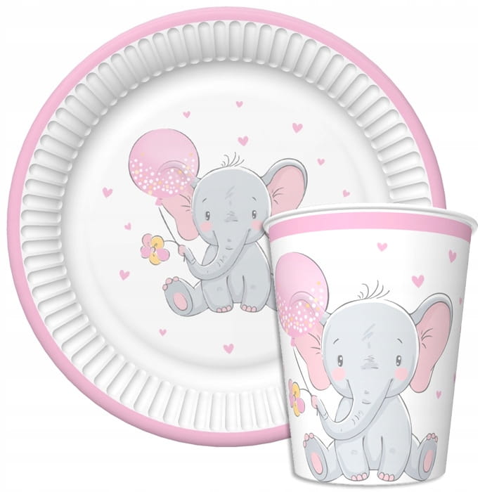 Zestaw uUrodzinowy talerze kubeczki słonik girl