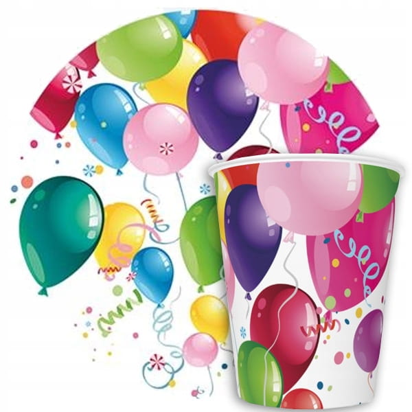 Zestaw uUrodzinowy talerze kubeczkib Baloniki 16szt